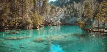 In einer mystischen Atmosphäre lädt der Blausee zum Verweilen ein.